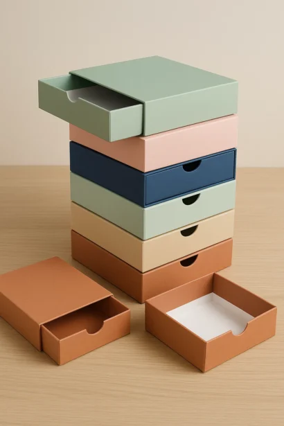 Made from sustainable kraft board, these drawer boxes are both stylish and environmentally responsible—great for ethical brands and handmade products.…Flat-Pack Rigid Drawer Boxes