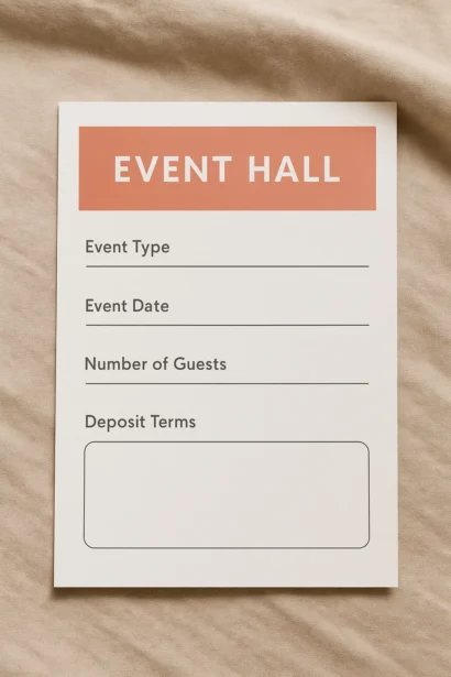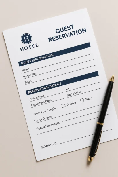 Customised forms for event halls, wedding venues, or party organisers. Include fields for event type, date, guest count, and deposit…Hotel Booking Forms