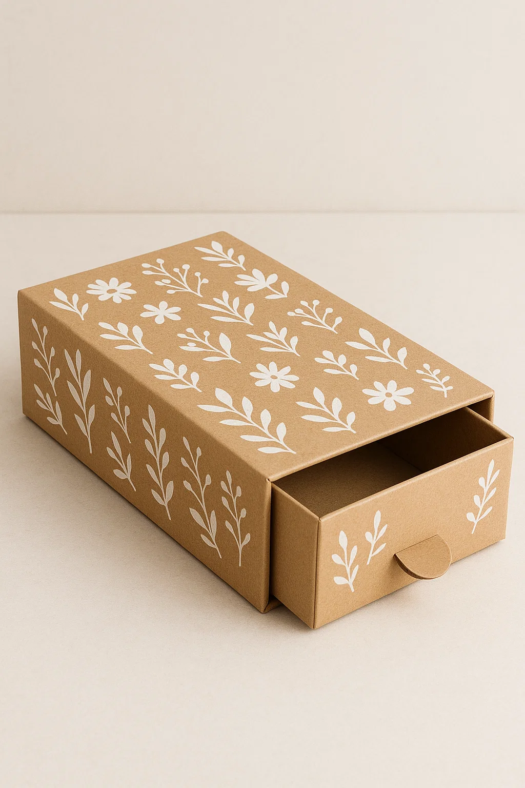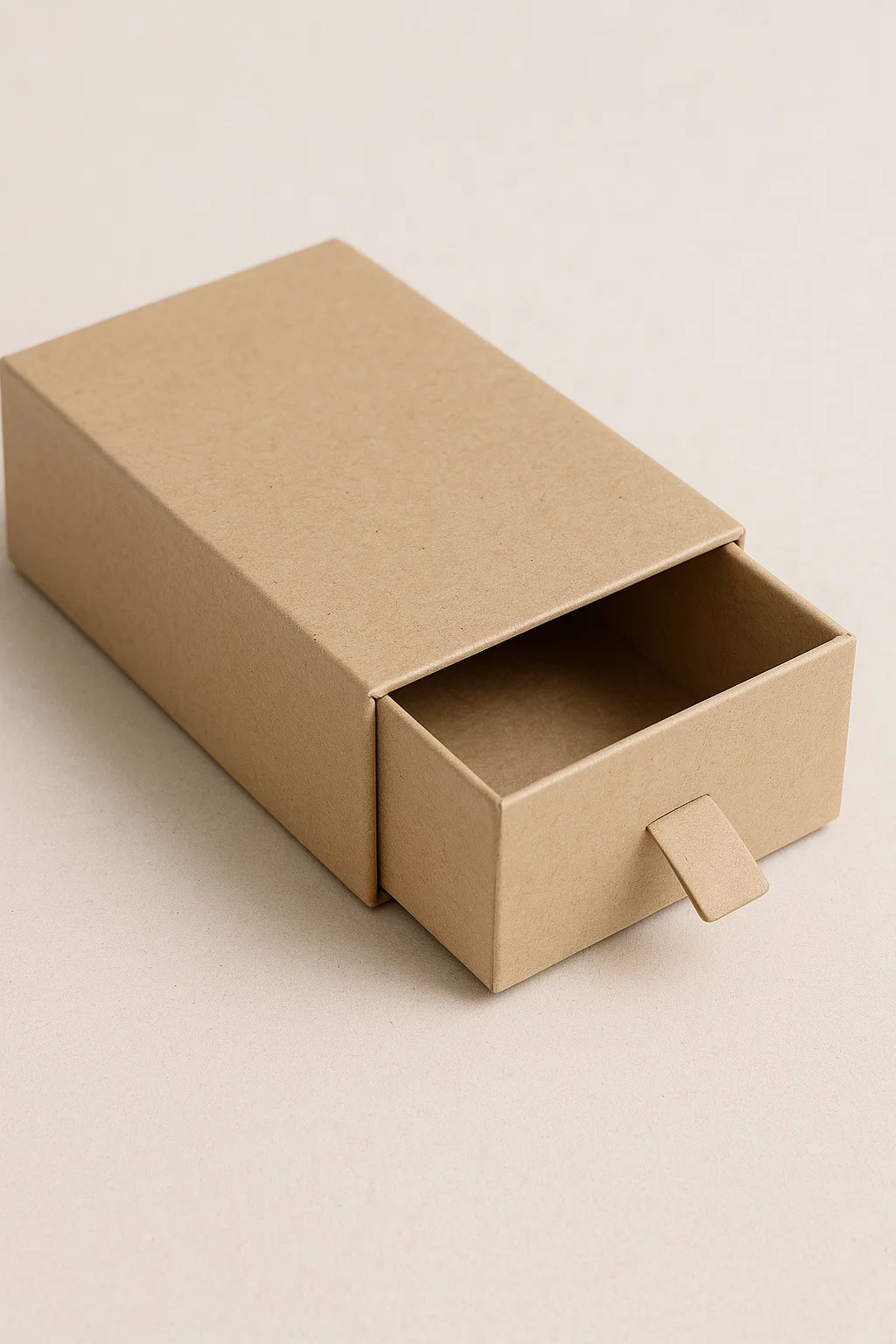 Eco-friendly Kraft drawer boxes are rigid slide-out packaging solutions made using natural brown Kraft paper and FSC-certified greyboard. Their drawer-style opening offers an elegant unboxing experience, while the Kraft material provides a raw, earthy appeal that resonates with environmentally aware customers.