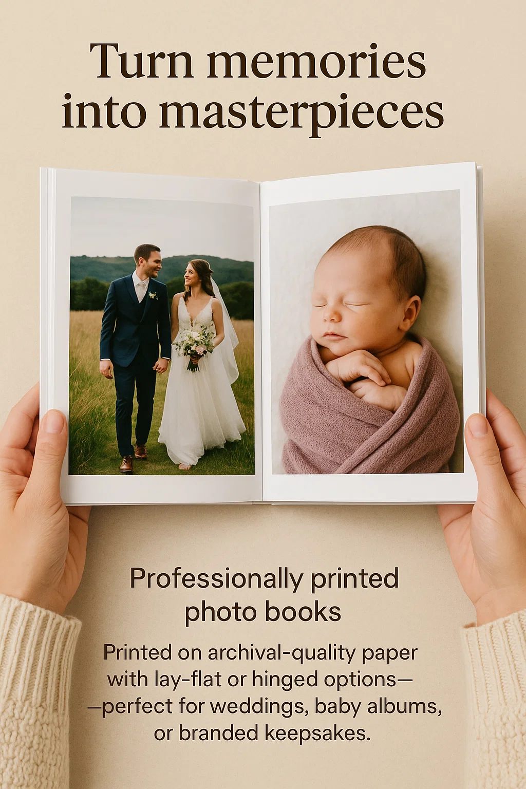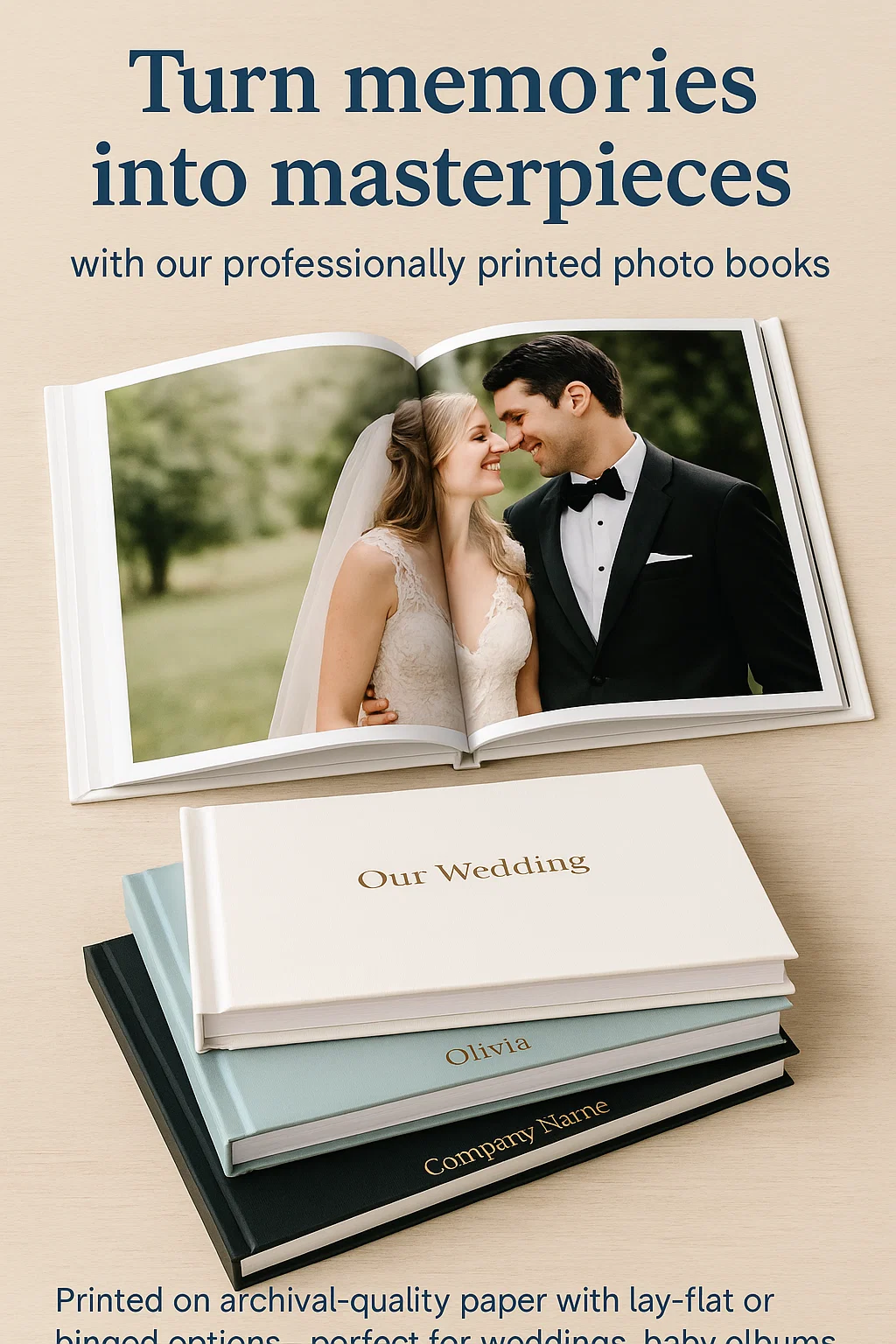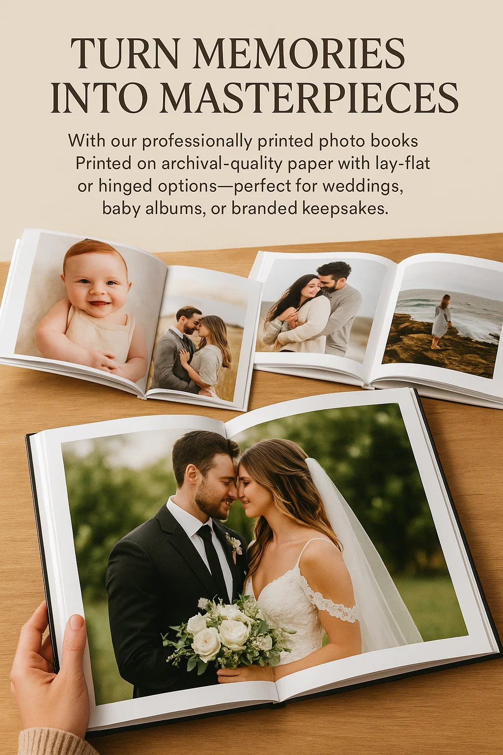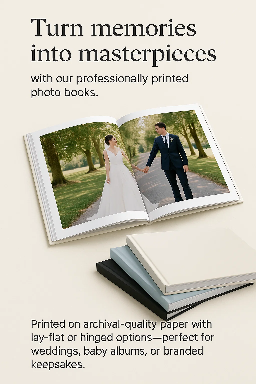 Turn memories into masterpieces with our professionally printed photo books. Printed on archival-quality paper with lay-flat or hinged options—perfect for weddings, baby albums, or branded keepsakes.