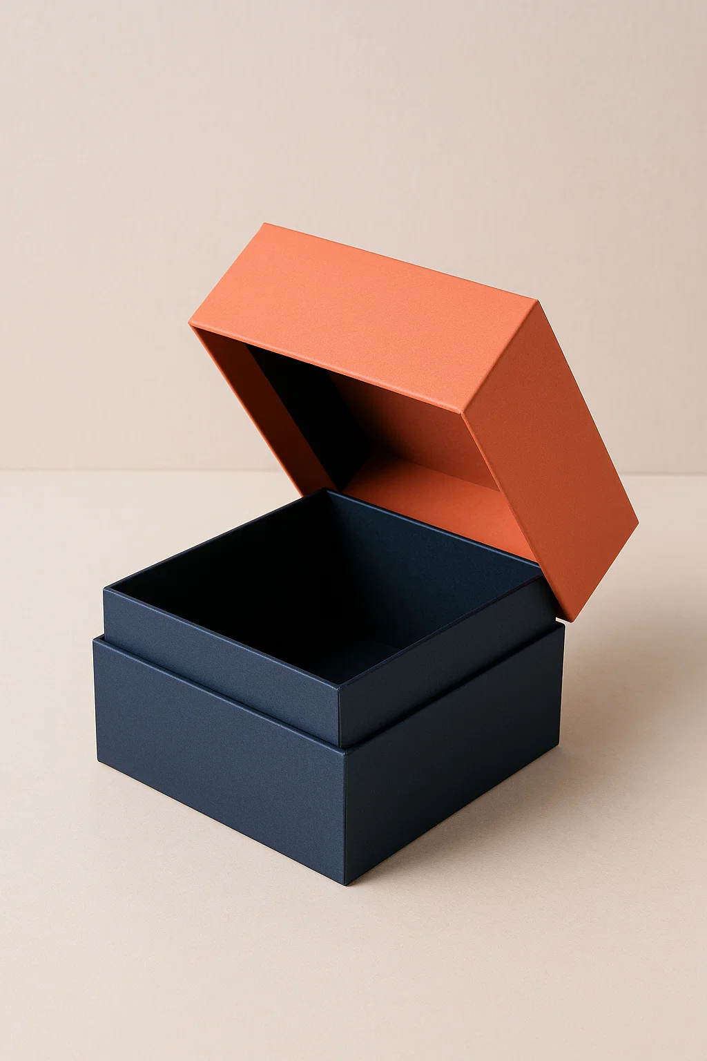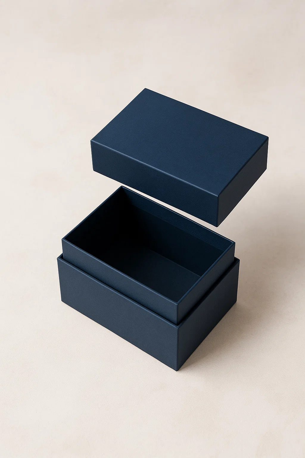 These boxes are pre-assembled and made from high-density greyboard, wrapped in premium paper, fabric, or textured materials. Ideal for upscale products, they combine form and function to create a lasting impression.