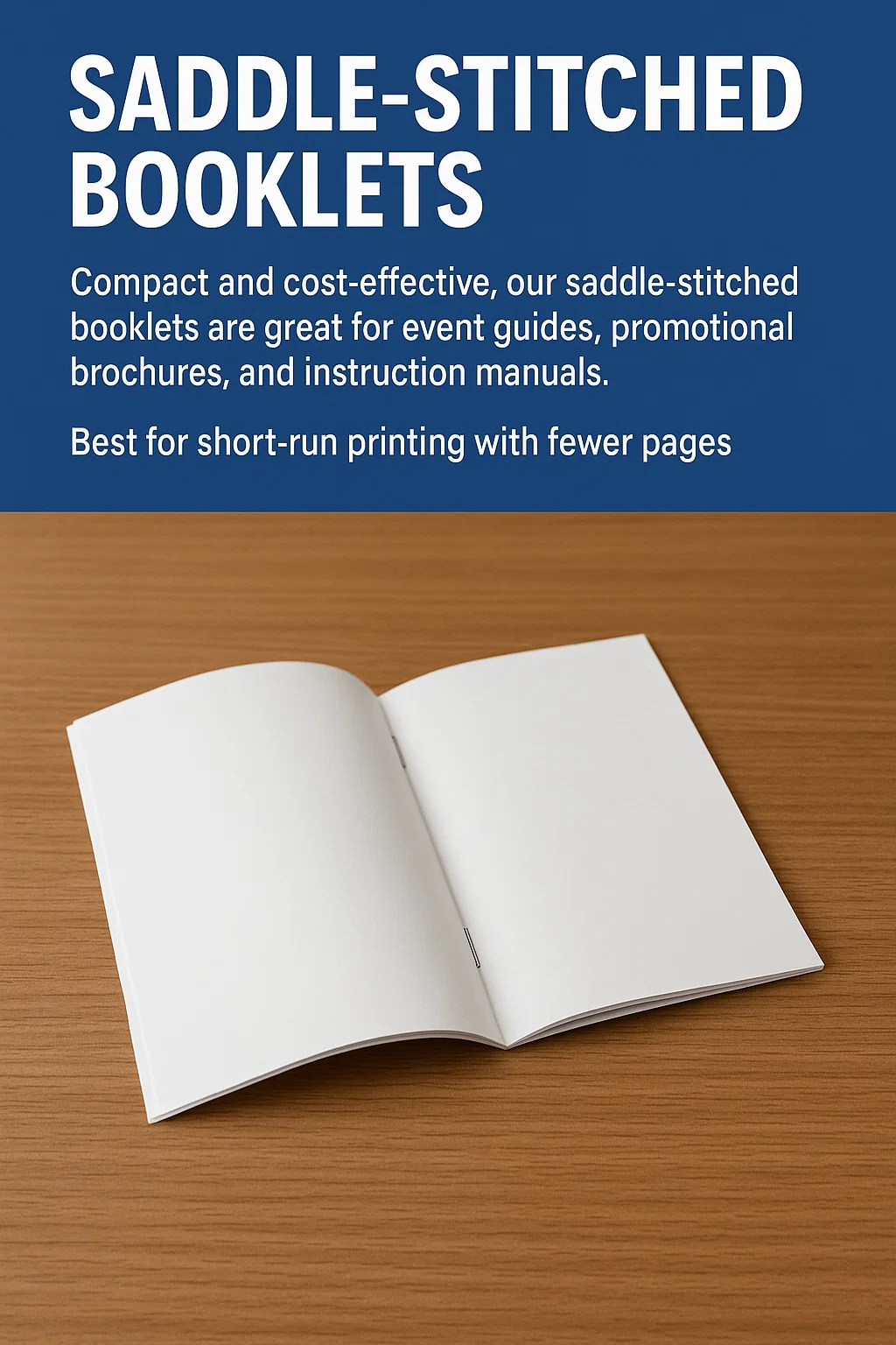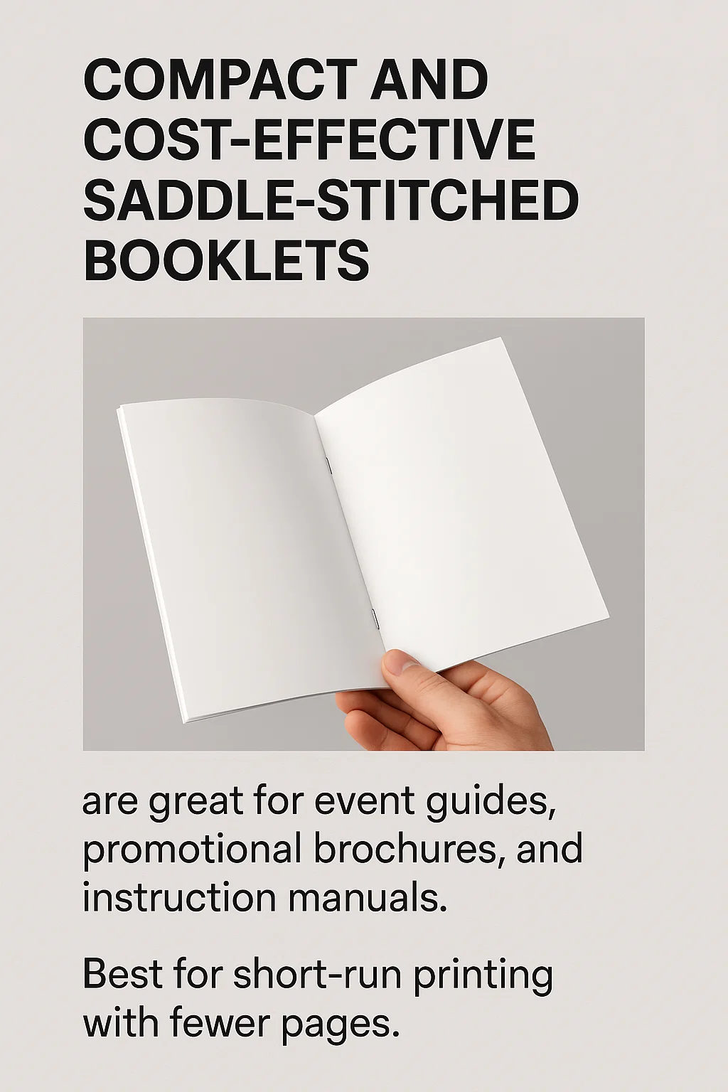 Saddle stitching is one of the most affordable booklet binding options—perfect for large-volume or budget-sensitive projects.