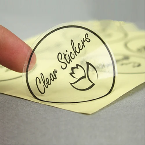 Transparent PVC stickers are printed on clear vinyl or PVC film, allowing the background surface to show through. This gives the illusion of a printed design floating directly on the product or packaging, making them ideal for: